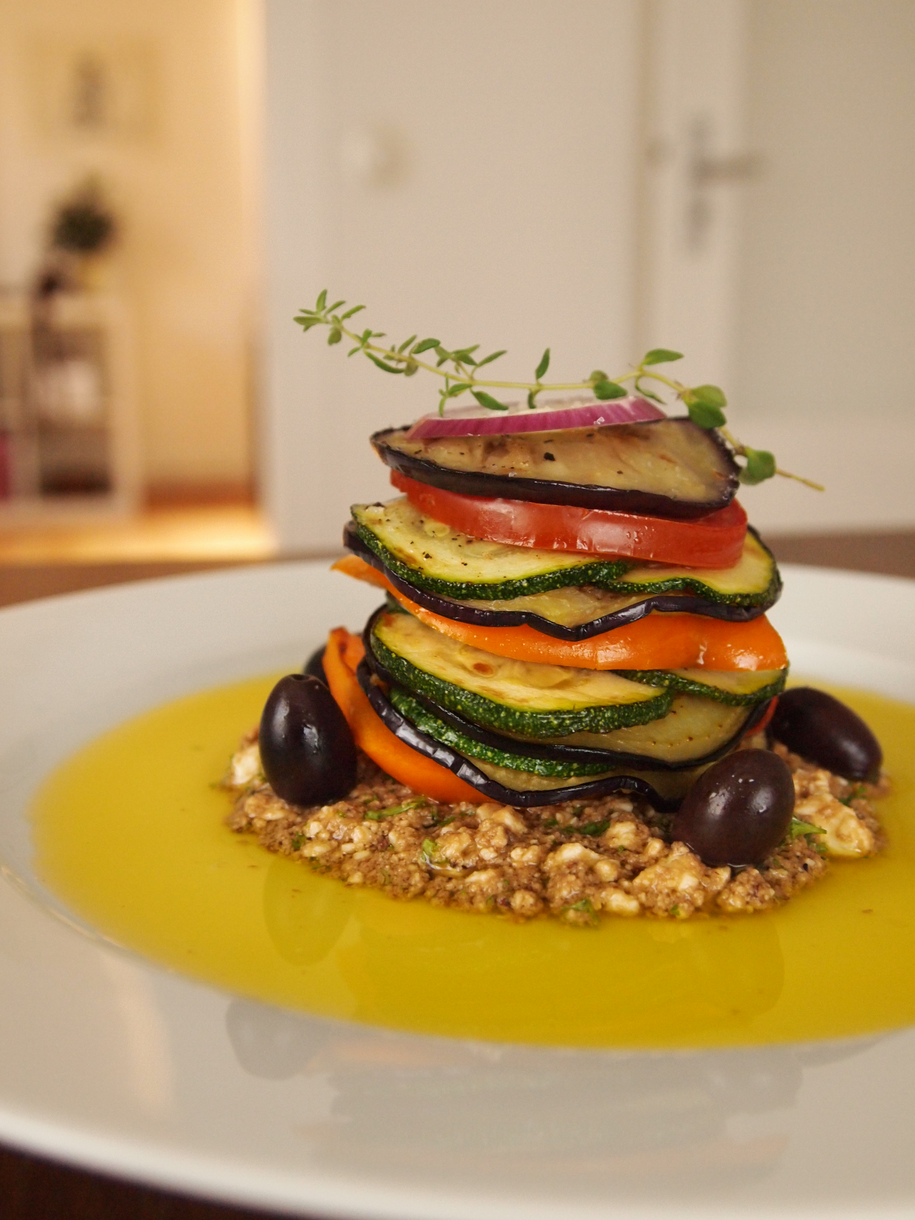 Diesmal ein Rezept für eine leichte Sommervorspeise aus vielen, verschiedenen gegrillten Gemüsen. Optisch nett angerichtet macht der Ratatouille-Salat-Turm auch was für Gäste her.