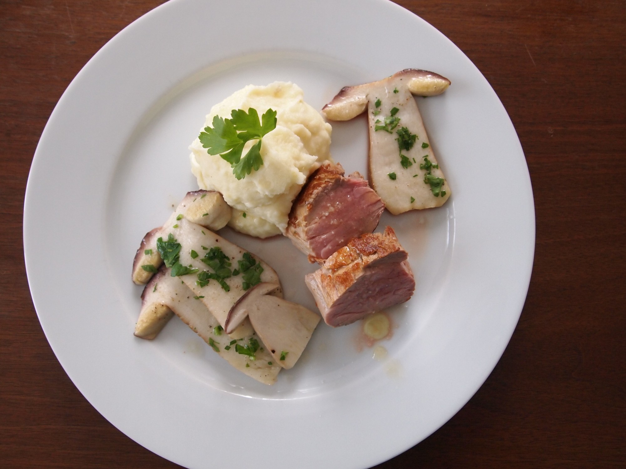 Schweinefilet mit Kartoffelpüree und Steinpilzen