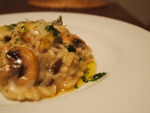 Alle guten Dinge sind drei – in diesem Fall vier: die vierte Variante, die man mit Risotto anstellen kann stelle ich euch jetzt hier vor. Variante eins, zwei und drei sind hier zu finden. Frische und getrocknete Pilze aus dem Wald oder vom Markt bilden natürlich die Hauptzutaten. Nicht zu vergessen – ein guter Reis von der Sorte Arborio, Carnaroli oder Vialone.