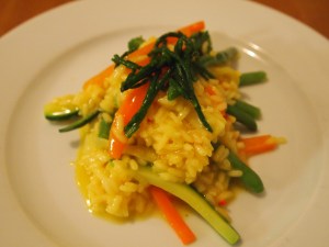 Hier reiht sich die nächste Variation in meine Risottorezepte ein: Ein Risotto mit verschiedenem frischem Gemüse der Saison, gekrönt mit der Passepierre-Alge, die dem Risotto ein leicht meerig-salziges Aroma verleiht. Dazu passt daher sehr gut ein Fischfilet ihrer Wahl – Anregungen gibt es hier. Aber nun zum Rezept:
