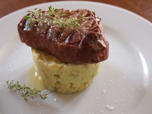 Filetsteak auf Avocado-Kartoffel-Stampf