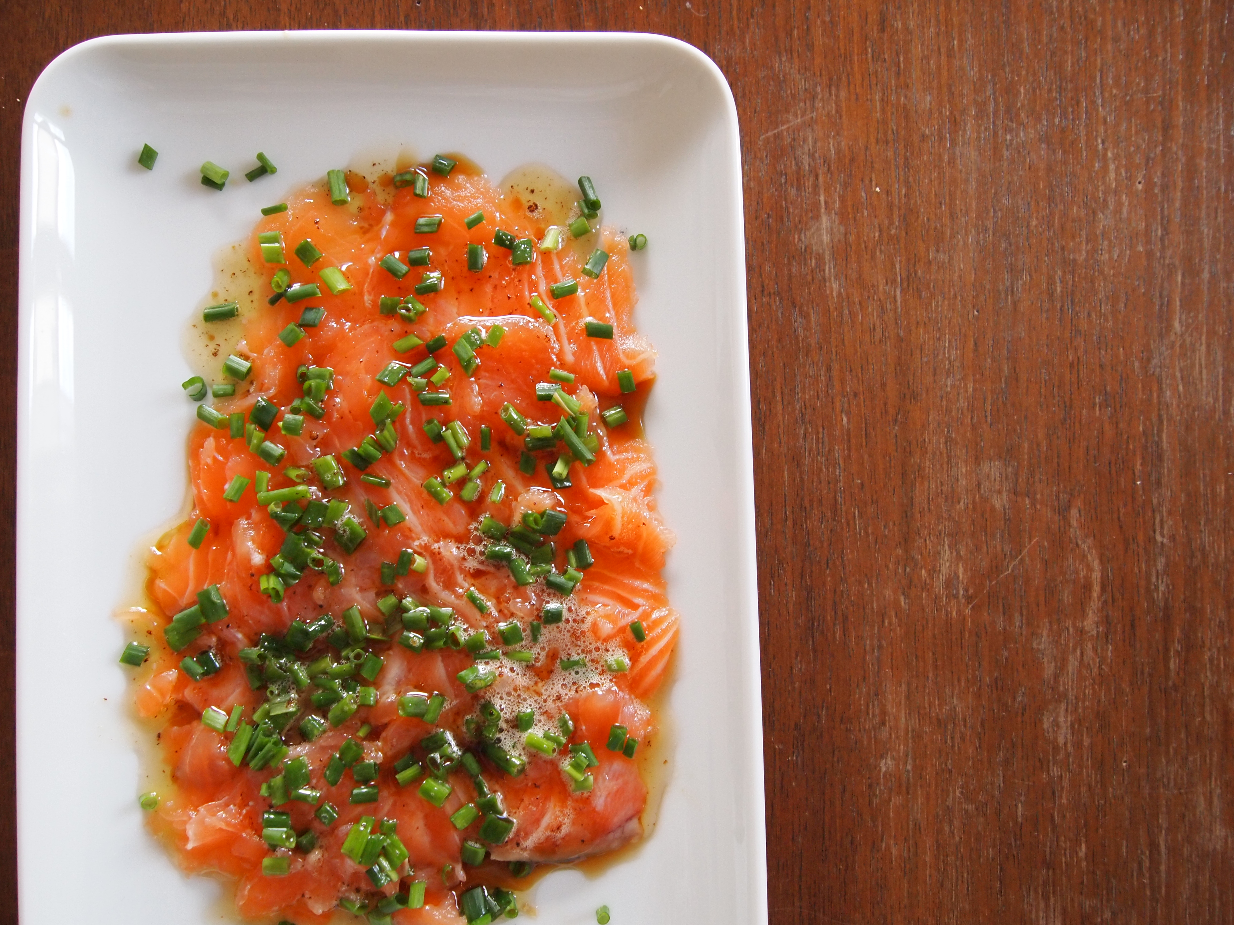 Sashimi vom Lachs mit Nussbutter und Schnittlauch