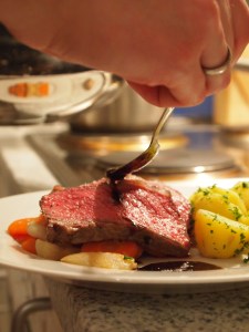 Heute zeige ich euch, wie man ein leckeres, saftiges rosa-gebratenes Roastbeef am Stück zubereitet. Ein Bratenthermometer wird dafür unbedingt gebraucht. Das Rezept ist eine perfekte Sache, wenn man mal Gäste zum Essen einlädt – das Roastbeef kann nämlich die ein oder andre Minute länger im Ofen gut vertragen, der Niedertemperatur-Garmethode sei Dank. Dazu passen saisonale Gemüsesorten, wie zum Beispiel im Herbst verschiedene Wurzelgemüse.