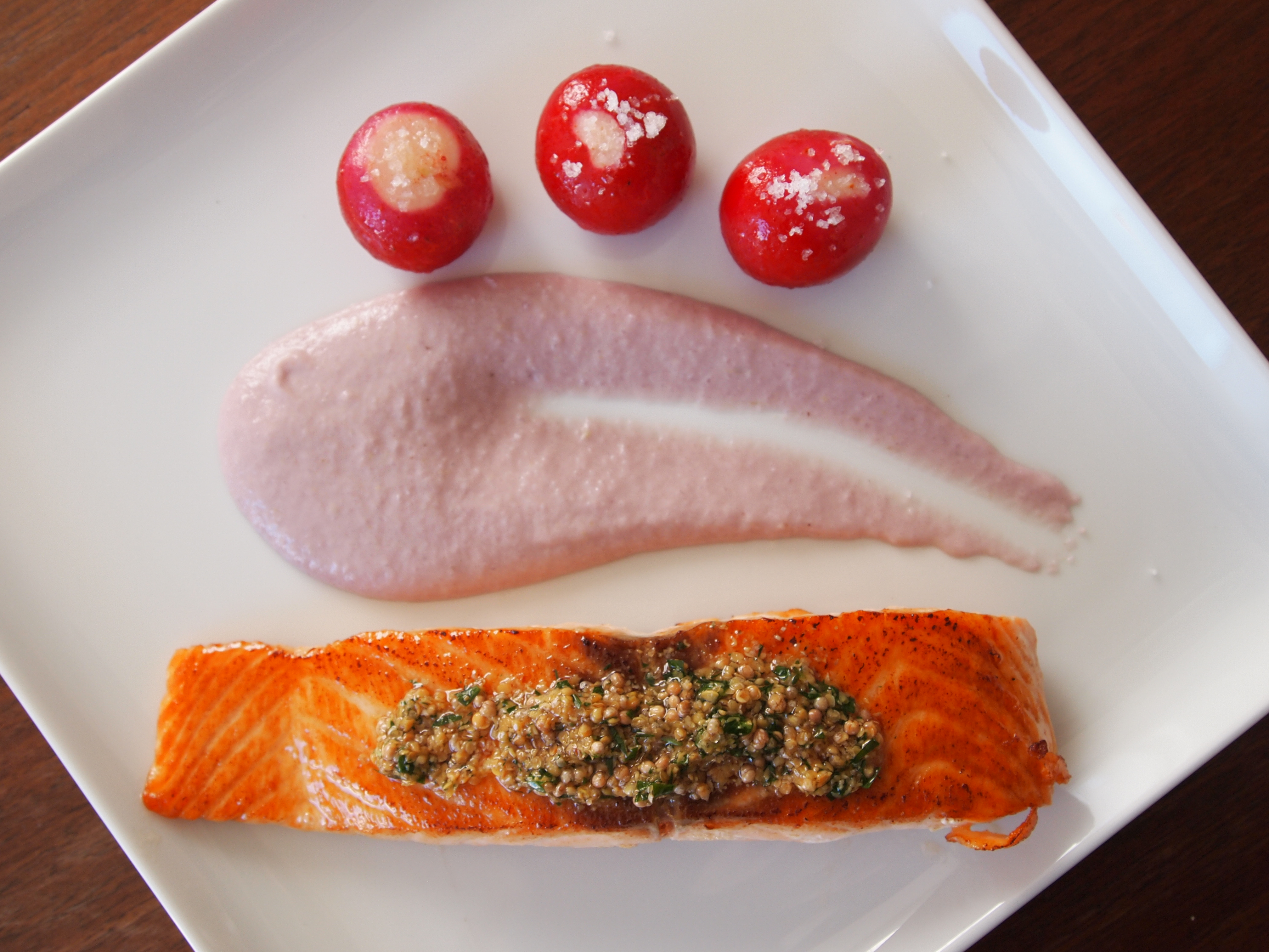 Lachs mit Zitronengremolata, Meerrettichcreme und Radieschen