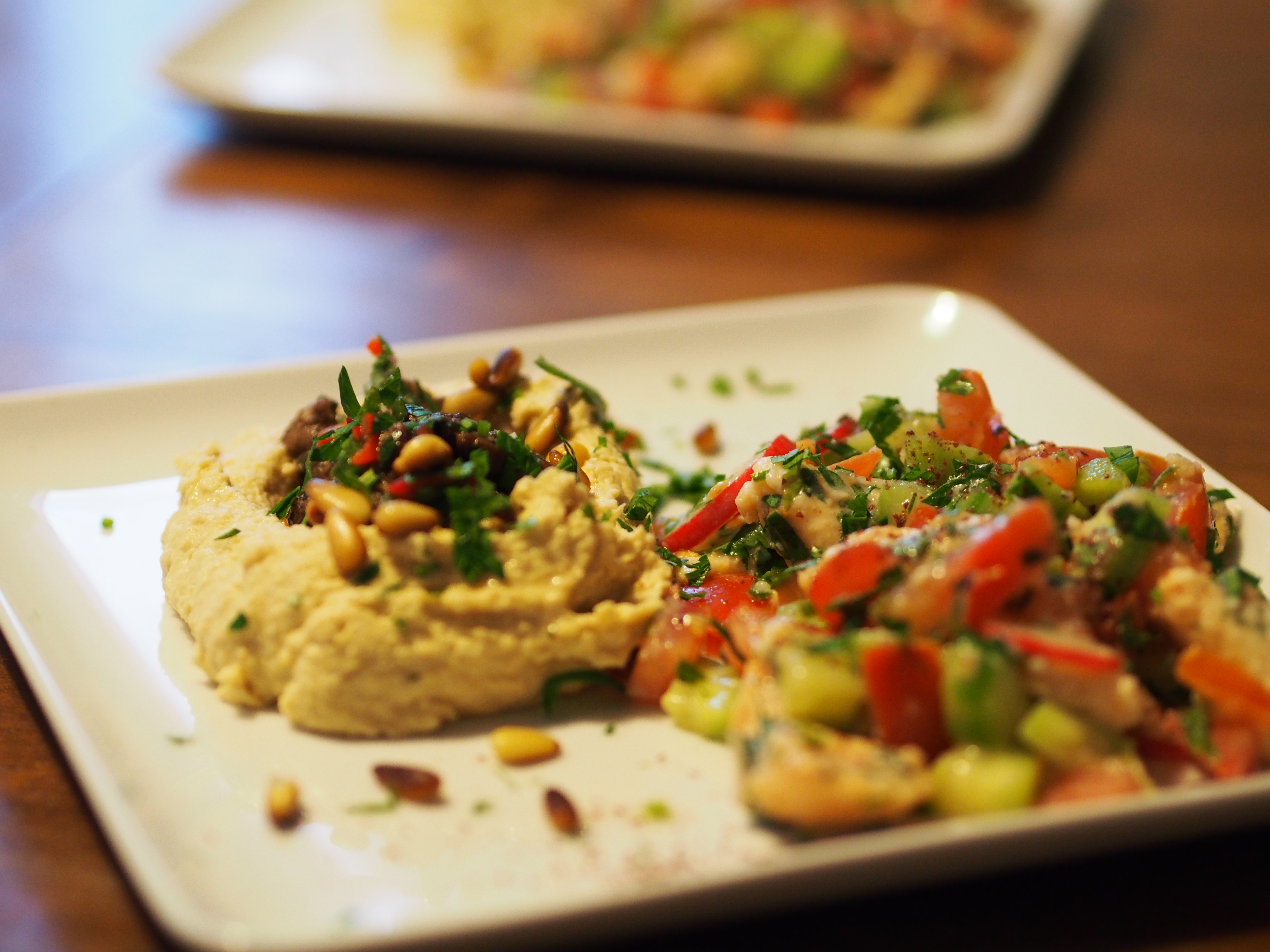 Rindfleisch, Hummus, Zitronensauce, Fattoush