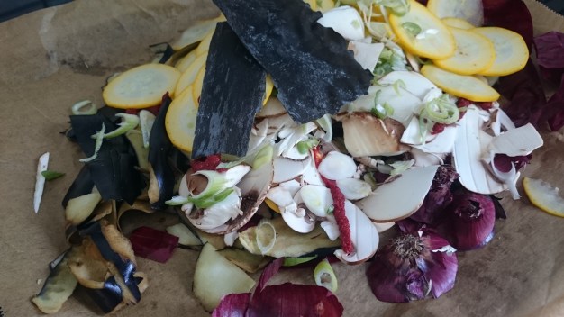 Hi ihr, jeder kennt es: Gemüse geschnippelt und am Ende bleibt ein Haufen von Schalen, Abschnitten, Strunken übrig, der einfach auf den Kompost wandert. Außer schöne Erde nach einem Jahr bringt das wenig! Auf chefsteps.com habe ich eine tolle Idee für diesen „Abfall“ gefunden: alles an Gemüse dünn mit einer Mandoline hobeln, auf ein großes tiefes Blech geben, etwas Tomatenmark und Olivenöl dazu (wer vom letzten Dashi-Ansatz noch übrig hat auch gut: Kombualge getrocknet) dann ab in den Ofen und bei 180 Grad 30-40 Minuten dunkel rösten. Je nach Gemüsemenge Wasser angießen (sollten ca. 2 Liter sein) und nochmal 30 Minuten reinschieben. Durch ein Sieb in ein Topf geben und auf die Hälfte einreduzieren. Mit Speisestärke oder Xanthan etwas abbinden, salzen. Ich friere die Sauce dann ein, dann hält sie locker mehrere Monate. Passt super zu Gemüse jeglicher Art, Fleisch oder Fisch, Nudel- oder Reispfannen.