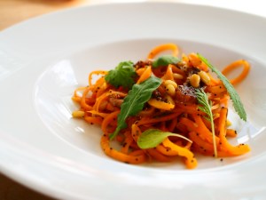 Eine leichte süß-knusprige Vorspeise im Sommer: Tagliatelle, also Nudeln aus Möhren, für die Extra-Süße sorgen Feigen, für den Crunch Mohnsamen. Dazu würde super Lammfleisch passen, zum Beispiel ein Rücken oder Lammkaree. Das Rezept stammt in Abwandlung aus dem Veggie-Kochbuch „Krautkopf“, den gleichnamigen Blog könnt ihr hier bewundern. Und hier das Rezept für die Möhrentagliatelle: