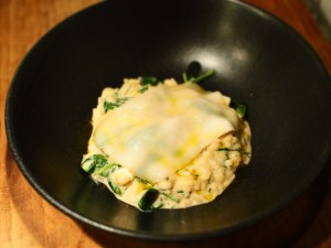 Auf dieses Rezept bin ich aufgrund einer Internetrecherche gestoßen. Auslöser war ein Essen im besternten Grieche „Malathounis“ in Kernen im Remstal. Joannis Malathounis kocht dort gehobene, griechische Küche fernab von Gyros, Pita und Tzatziki. Dem Michelinführer ist das seit Jahren ein Stern wert – das kann ich mehr als nachvollziehen! Zudem ist es das einzige griechische Restaurant außerhalb Griechenlands mit diesen Weihen. Zurück zu meiner Recherche: ich war nach diesem Besuch auf der Suche nach Rezepten von Joannis Malathounis (der leider „noch“ kein Kochbuch aufgelegt hat – etwas in die Richtung geht vielleicht noch das Buch von Konstantin Filippou) und so stieß ich auf ein Video in dem er Spinatrisotto zubereitete. Das Tolle und Erfrischende an diesem Risotto ist die Kombination aus Spinat, Mascarpone, Zitronenschale, Feta und frischem Dill, obenauf eine schmelzende Scheibe Lardo di Colonnata – eine super Kombination, die richtig gut harmoniert. Hier das Ergebnis und das Rezept: