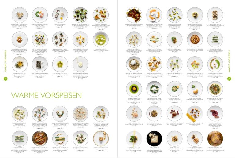 Die Französische Küche ist wie erwähnt mit über 1000 Fotos illustriert. Das kommt unter anderem auch durch die Übersichtsseiten vor jeden Kapiteln, die alle Teller aus der Vogelperspektive zeigt: