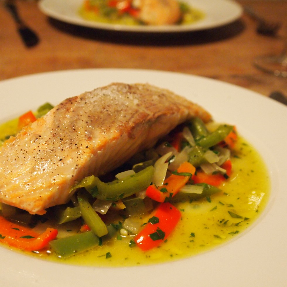 Lachsfilet auf mariniertem Paprikagemüse