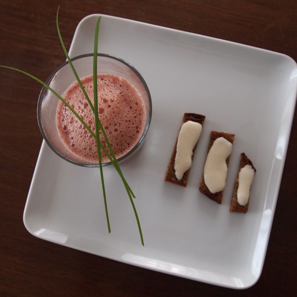 Rote-Bete-Schaumsüppchen mit Meerrettich-Crostinis