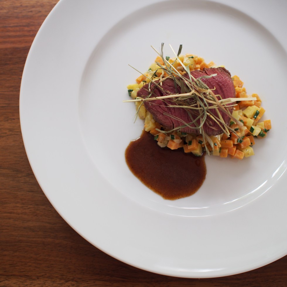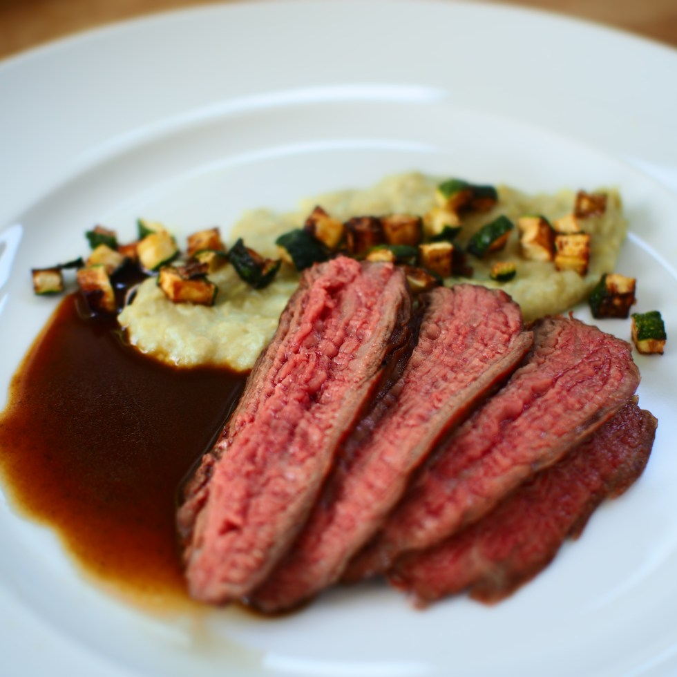 Rinderfilet im Heu gegart und Kartoffelrisotto