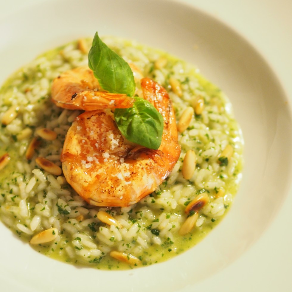 Riesengarnelen mit Basilikumrisotto