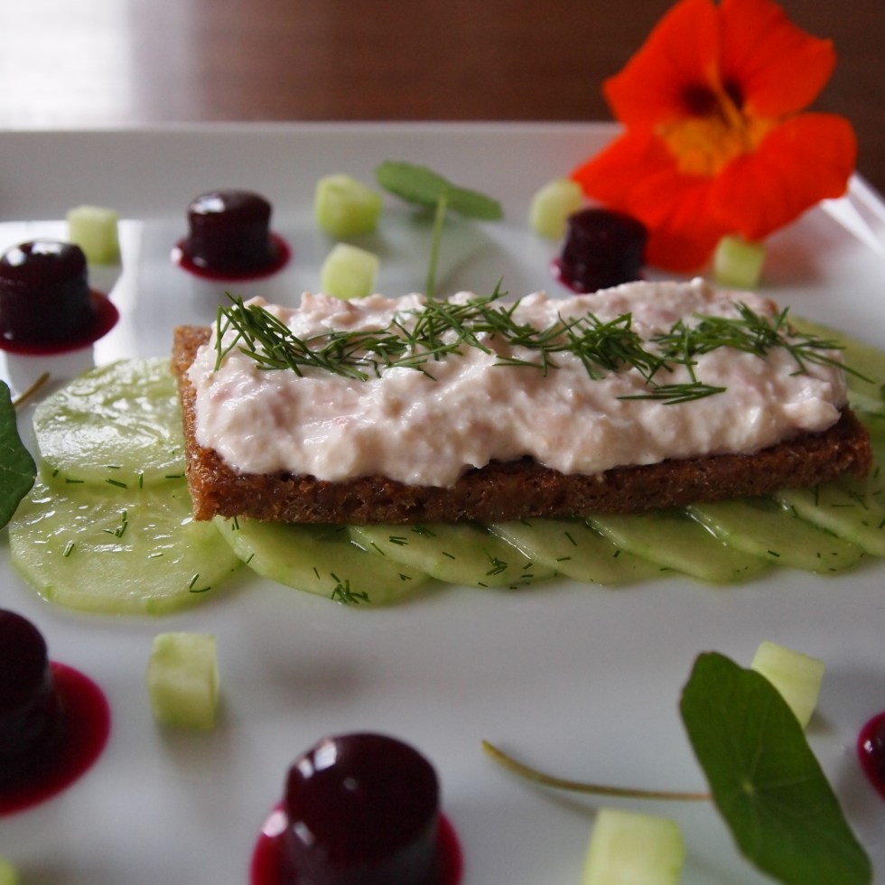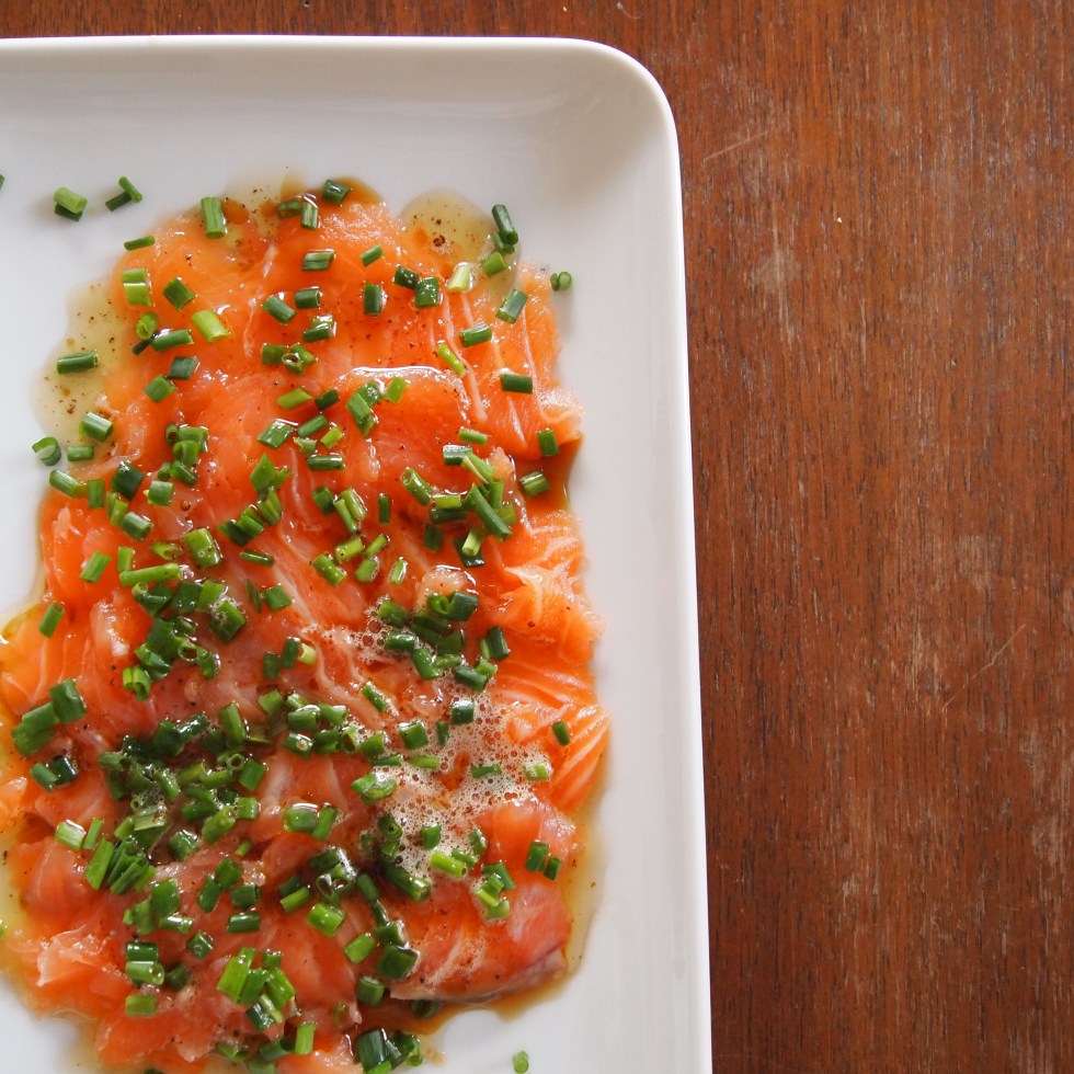 Sashimi vom Lachs mit Nussbutter und Schnittlauch