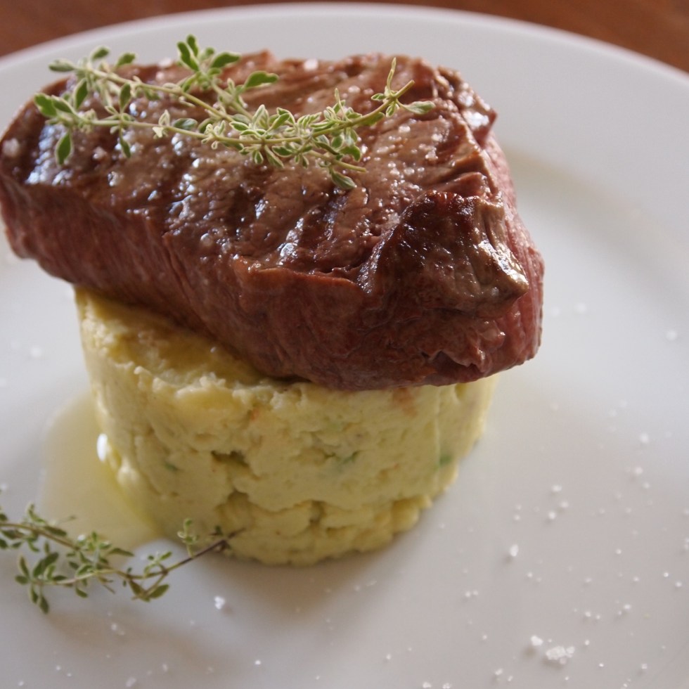 Filetsteak auf Avocado-Kartoffel-Stampf